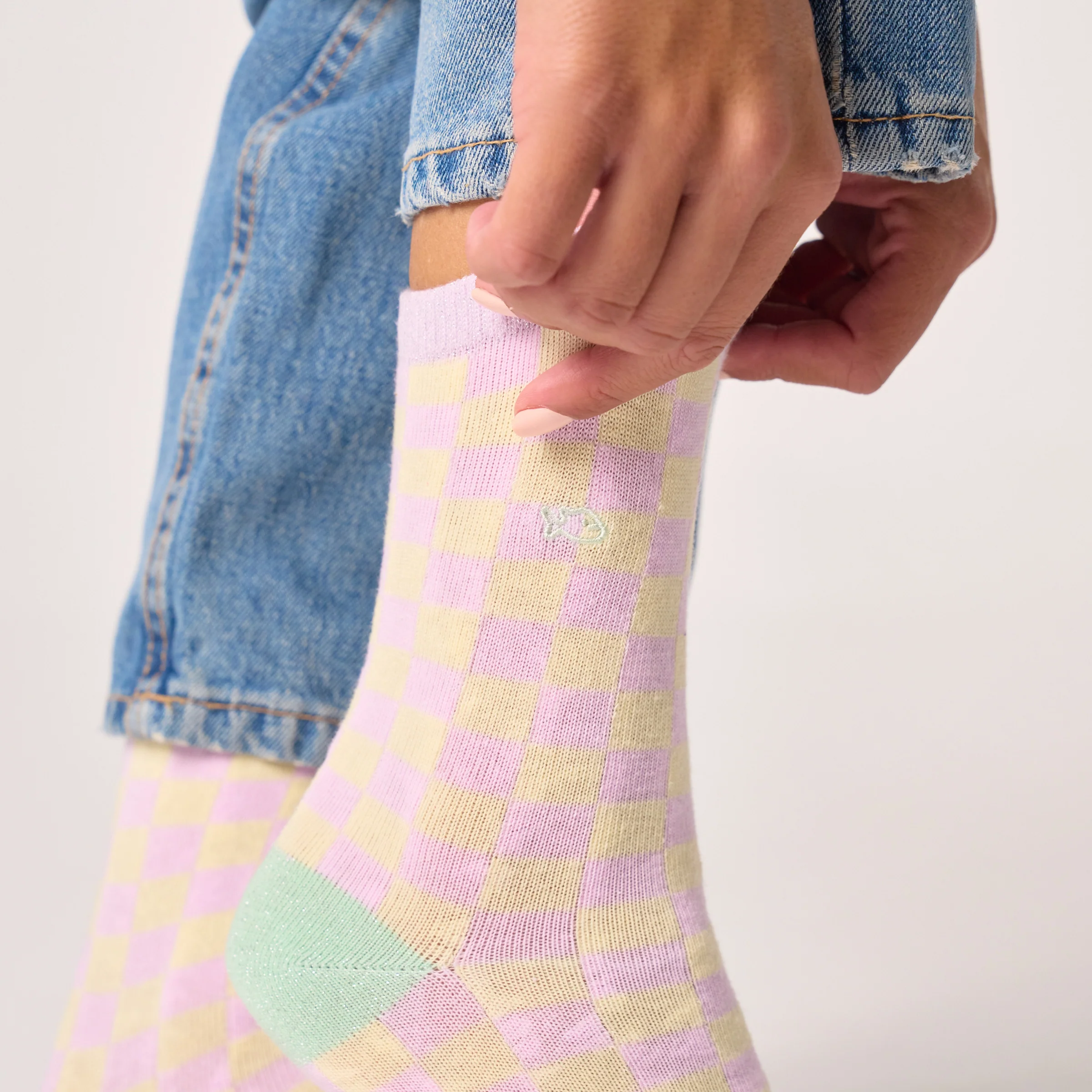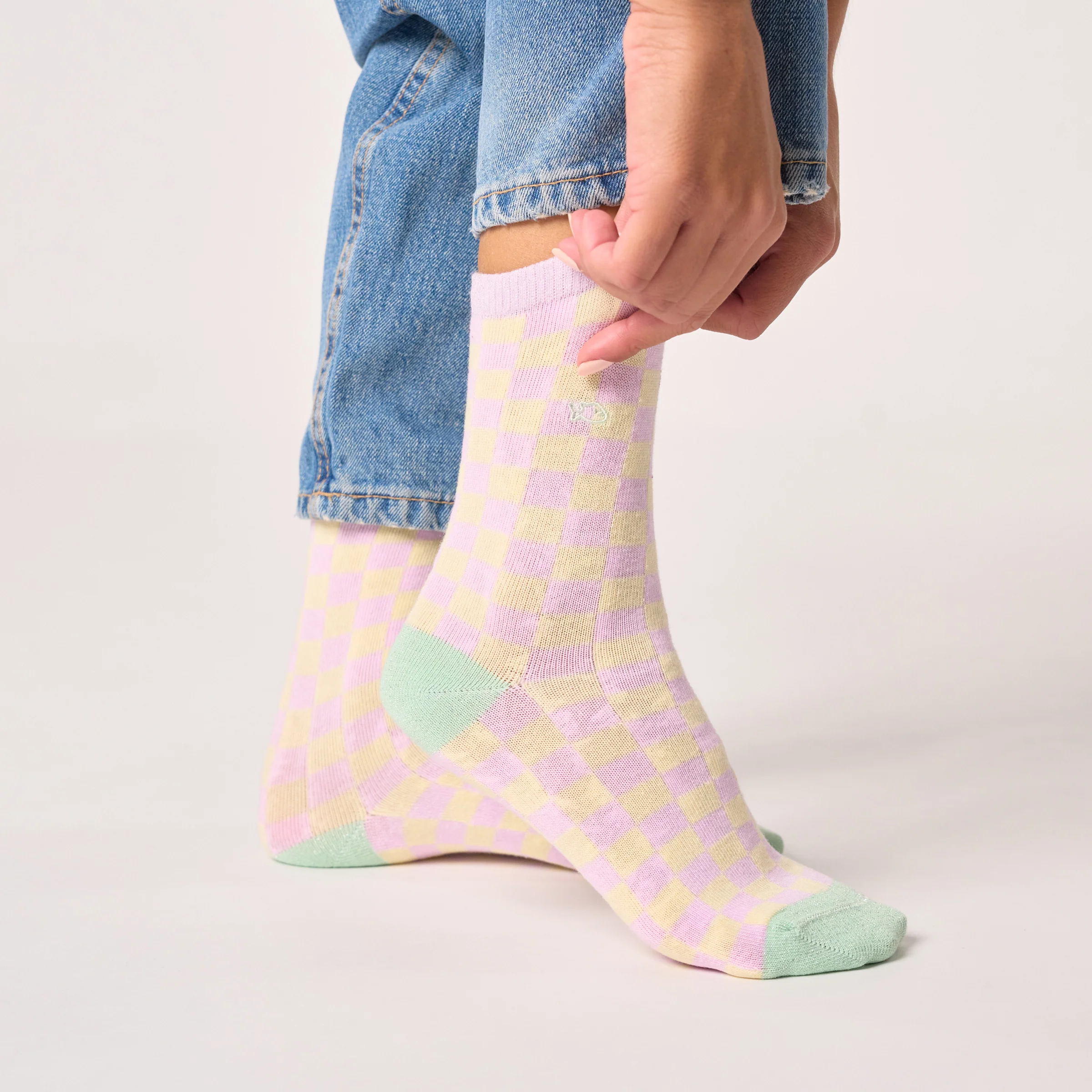 Nuestros calcetines de cuadros son perfectos para añadir un toque de estilo y originalidad a tu look. Fabricados en algodón y con certificación OEKO-TEX y terminados a mano, ofrecen comodidad y durabilidad.